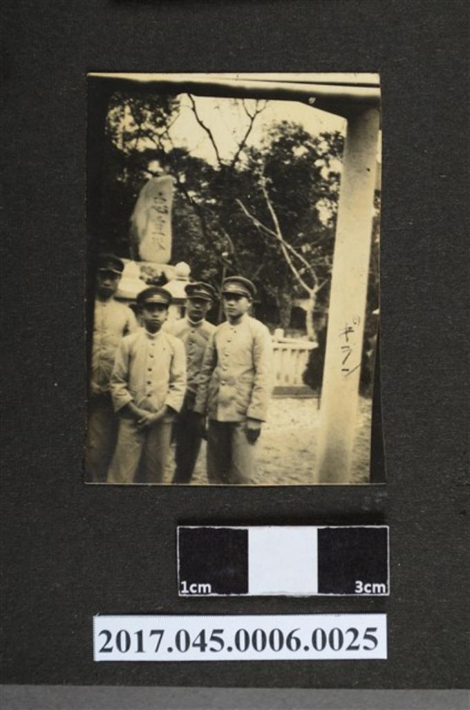 林修文與臺北二中3同學於宜蘭忠靈塔前合影