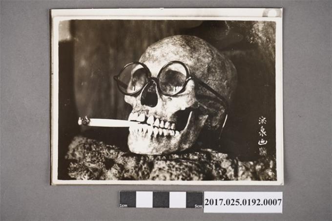 霧社事件鳥井勇造拍攝之骷髏照黑白複製照