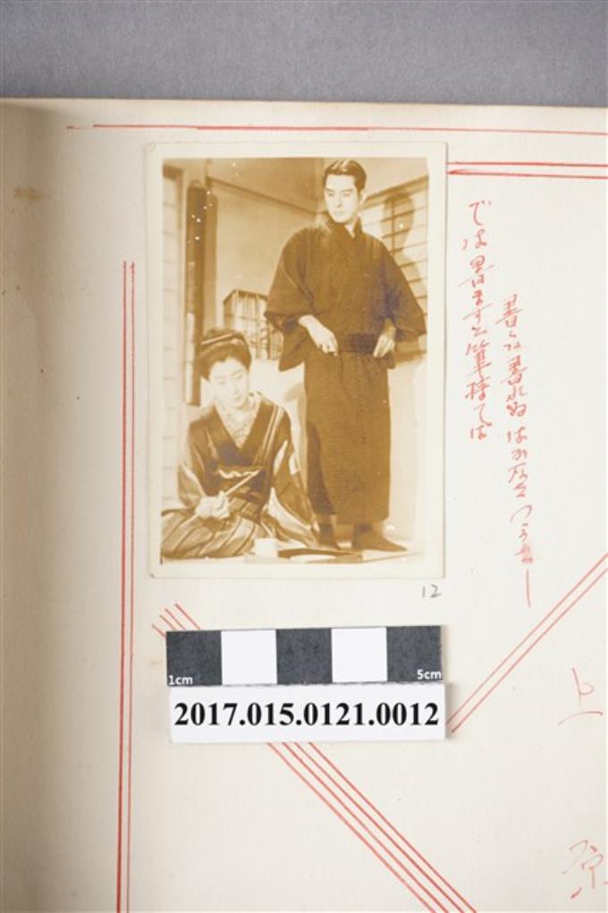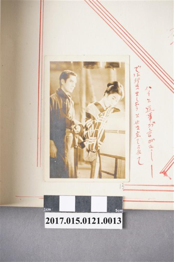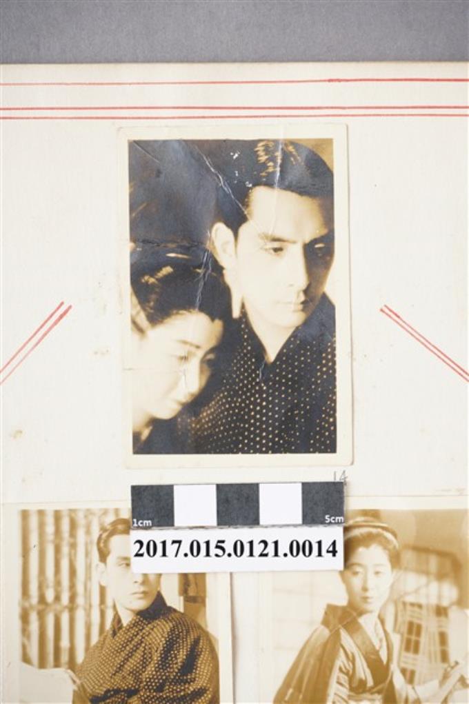 日本松竹公司出品《愛染かつら》劇照:著和服女子與西裝男子側身照