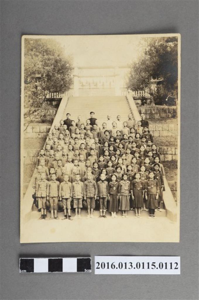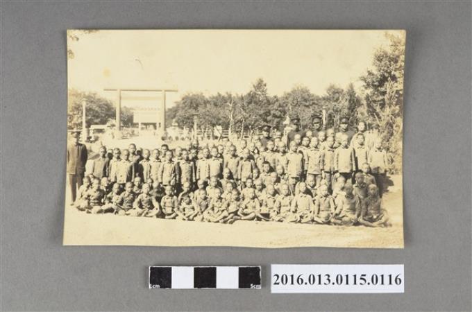 男女小學生於神社前團體合照