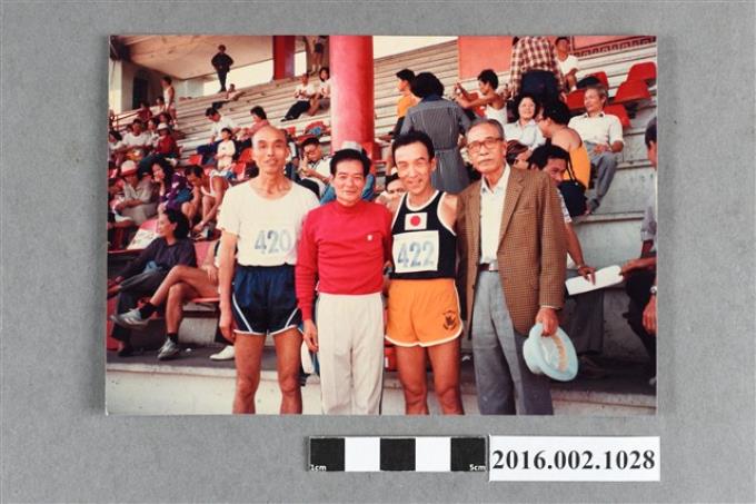 張星賢與來台參加高齡者運動之日本選手–井長守等人於大會會場合照