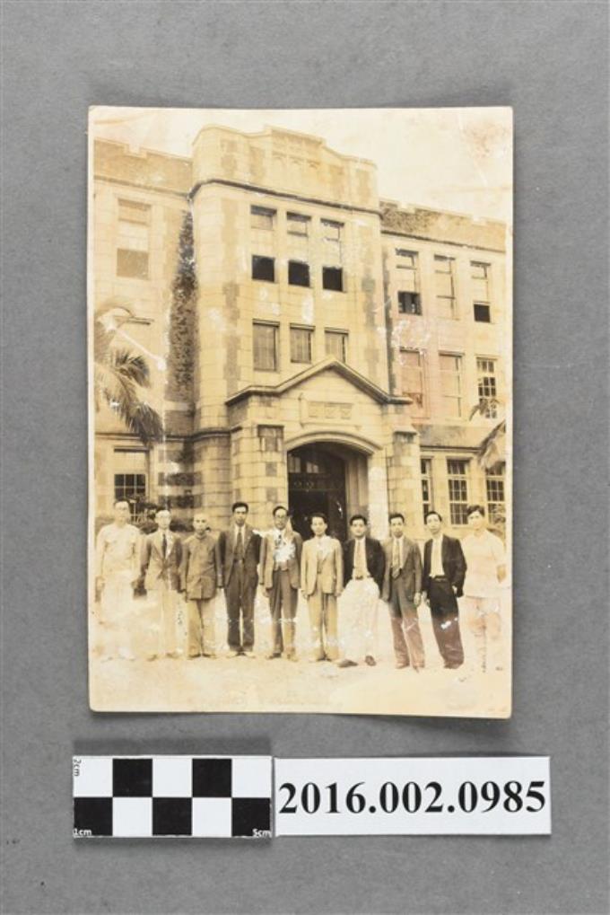 張星賢任職省立台中師範學校訓導主任時期與校長、教職員合照