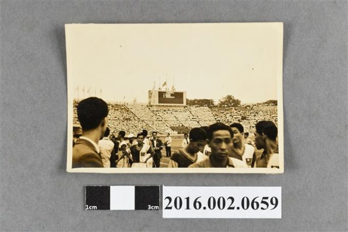 台灣與日本田徑女選手等人於運動場合照