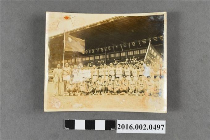 張星賢擔任副總領隊帶領台灣田徑隊遠征菲律賓與全體隊員於馬尼拉黎沙運動場合照