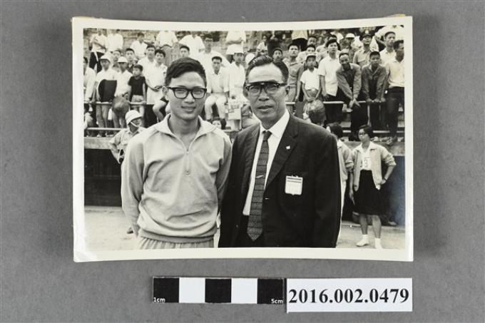 張星賢就讀早稻田大學時期利用寒假回台擔任巡迴教練與何友澄選手於台南第一女中運動場練習起跑照片