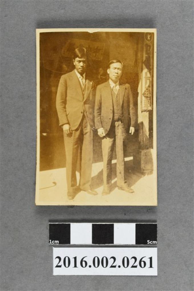 張星賢與堂兄張星建於台中中央書局前合照