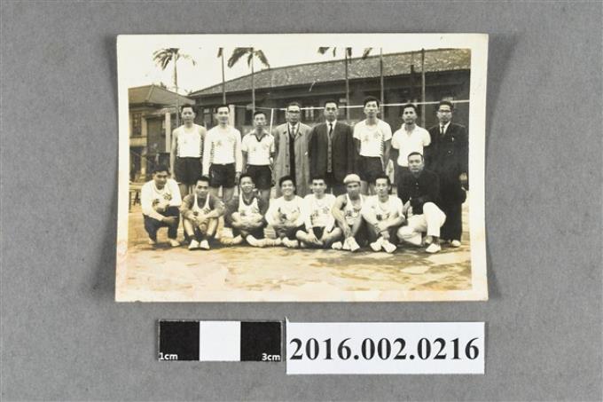 張星賢與合作金庫同仁、排球隊隊員於球場合照