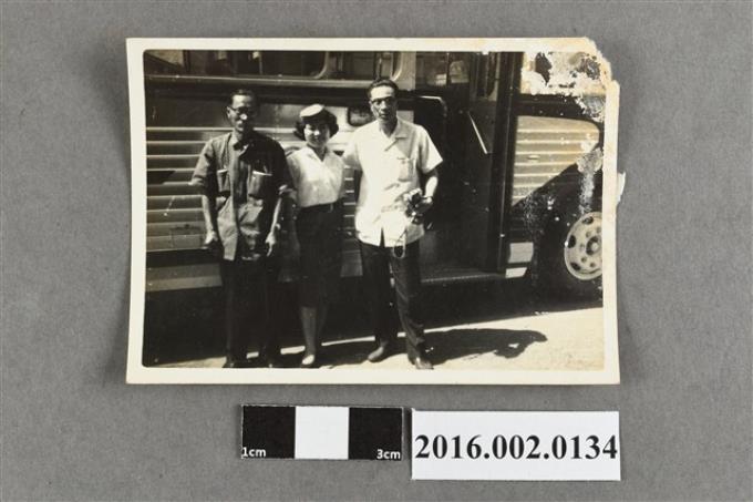 張星賢與賴土金、金馬號小姐於南投集集站公車前合照