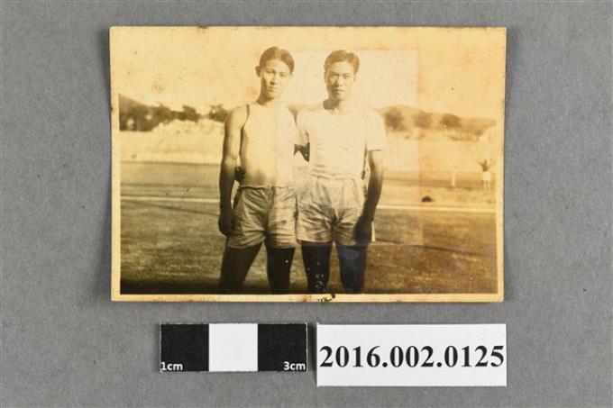 張星賢就讀早稻田大學時期代表日本參加第十屆洛杉磯奧運與隊友於奧運比賽場合照