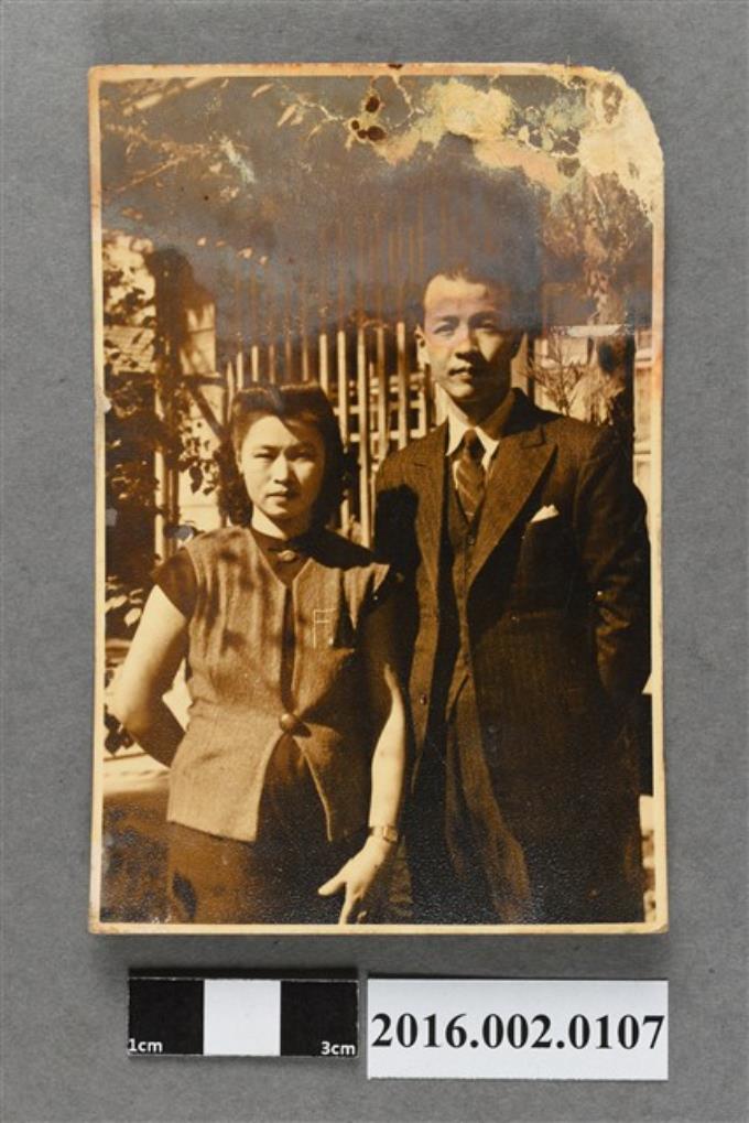 張星賢之四妹夫婦於臺灣銀行宿舍後園合照