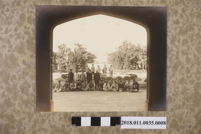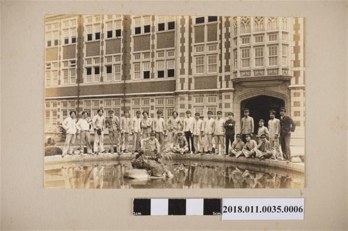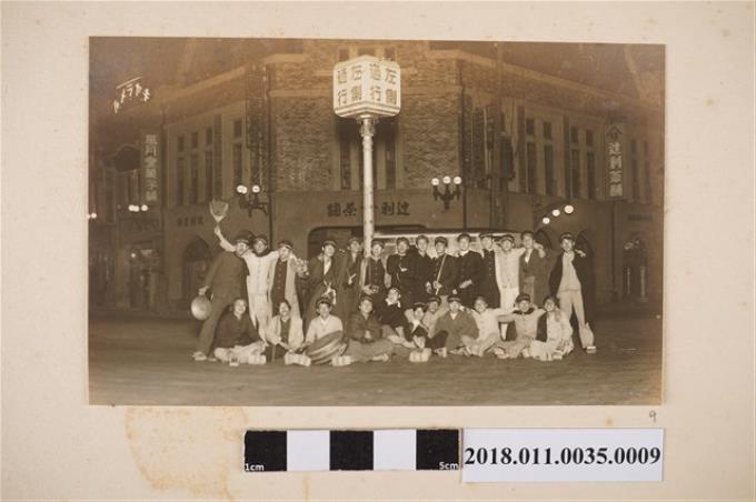 臺北高校學生手持ストーム道具於辻利茶舖前留影