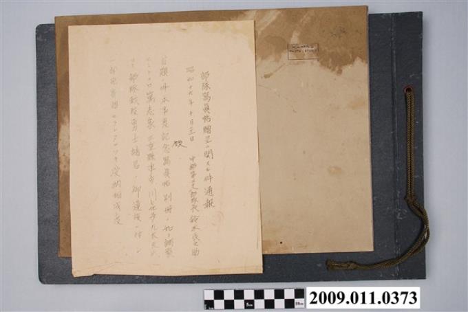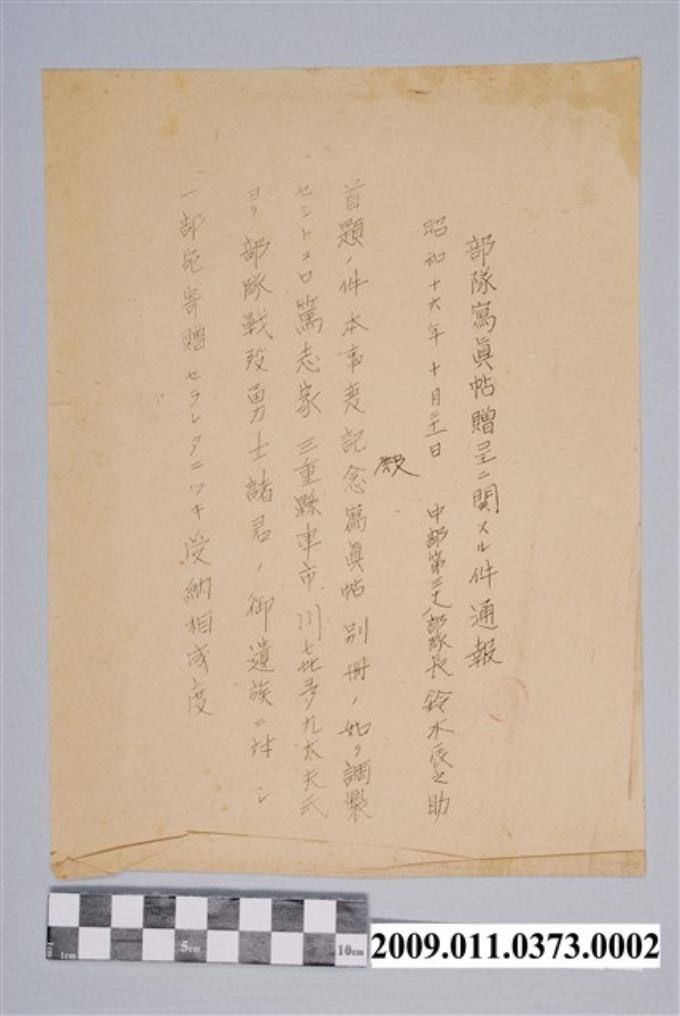 中部三十八部隊長鈴木辰之助關於贈送部隊相簿事宜通報