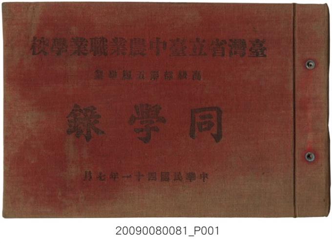 臺灣省立臺中農業職業學校高級部第五屆畢業同學錄