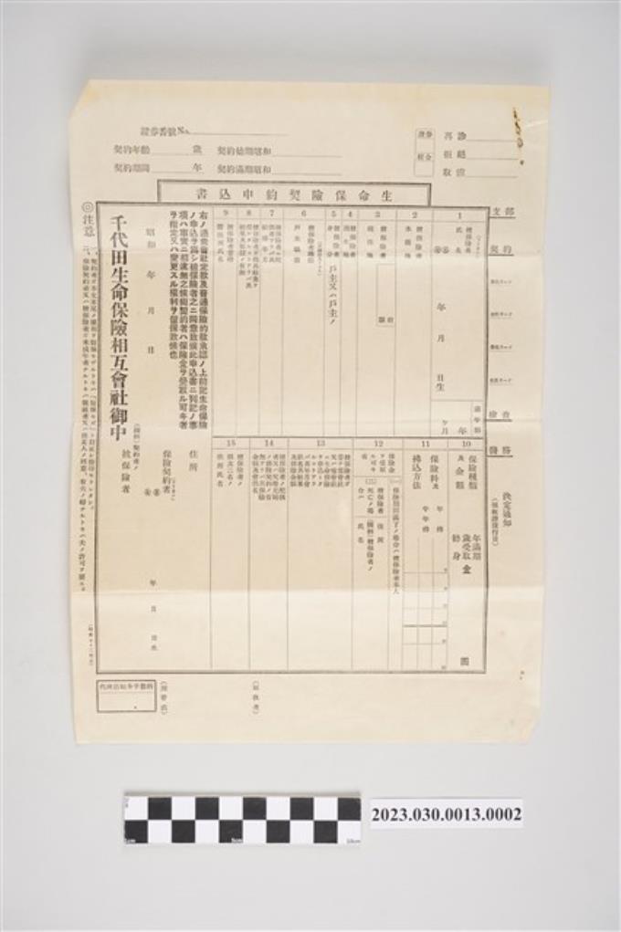 千代田生命保險相互會社臺灣支部生命保險申込書寫