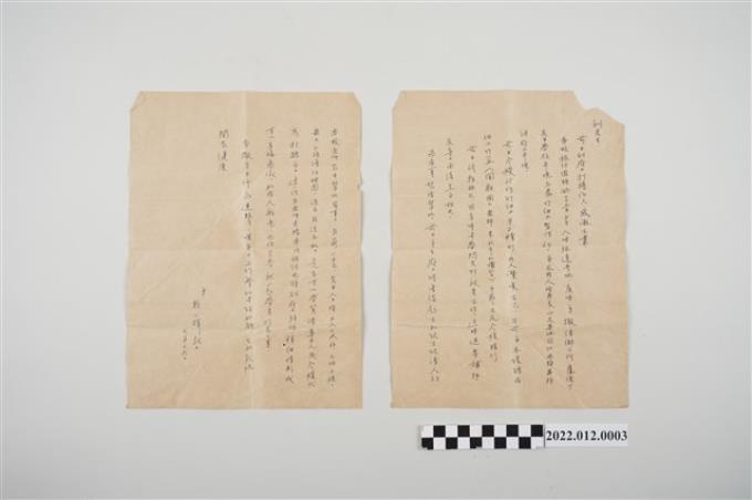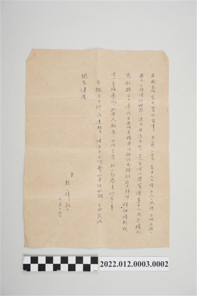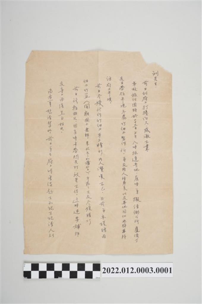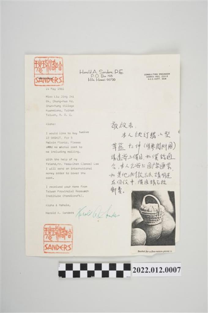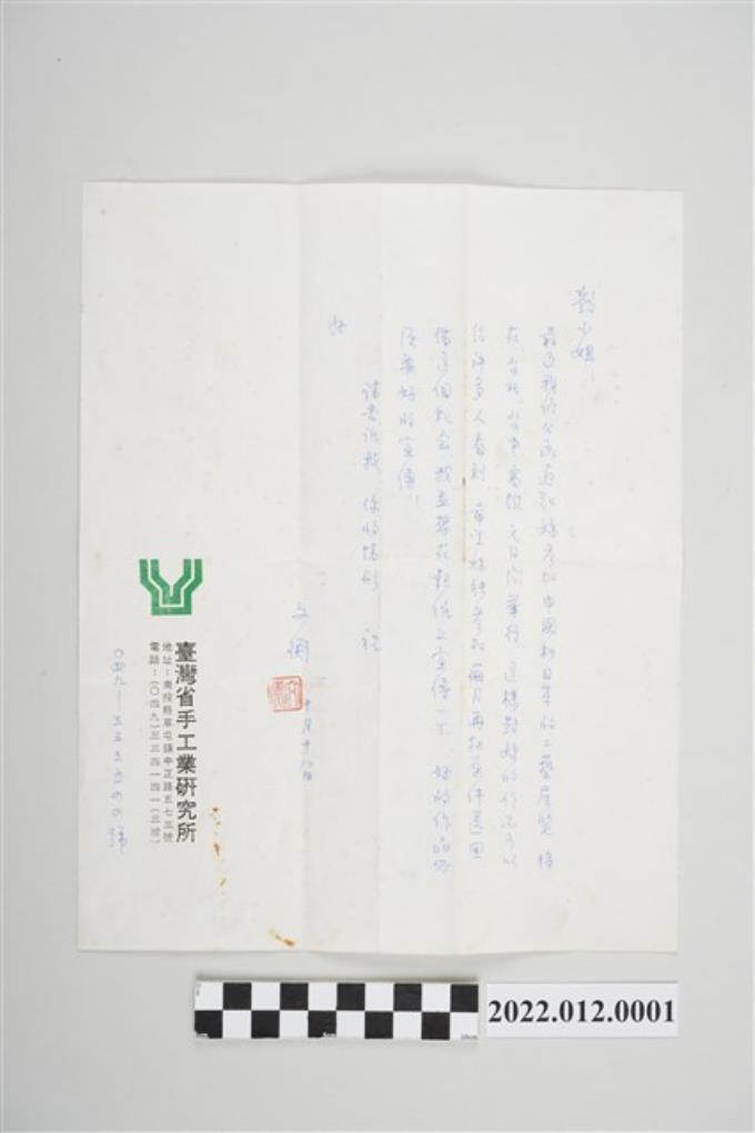 臺灣省手工業研究所文衡予劉靜枝邀請出席之書信