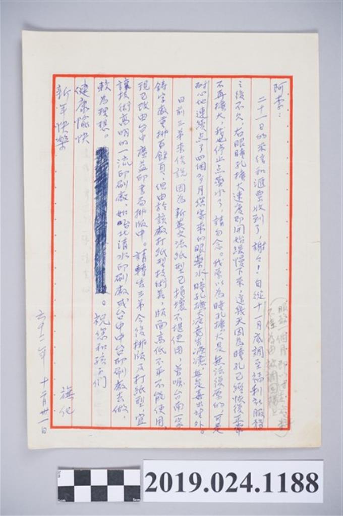 1973年12月31日柯旗化獄中家書