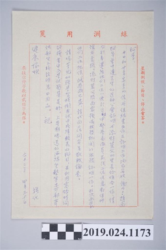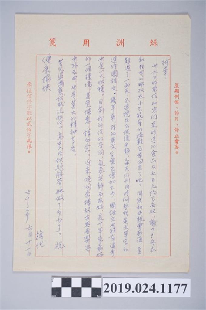 1973年6月11日柯旗化獄中家書