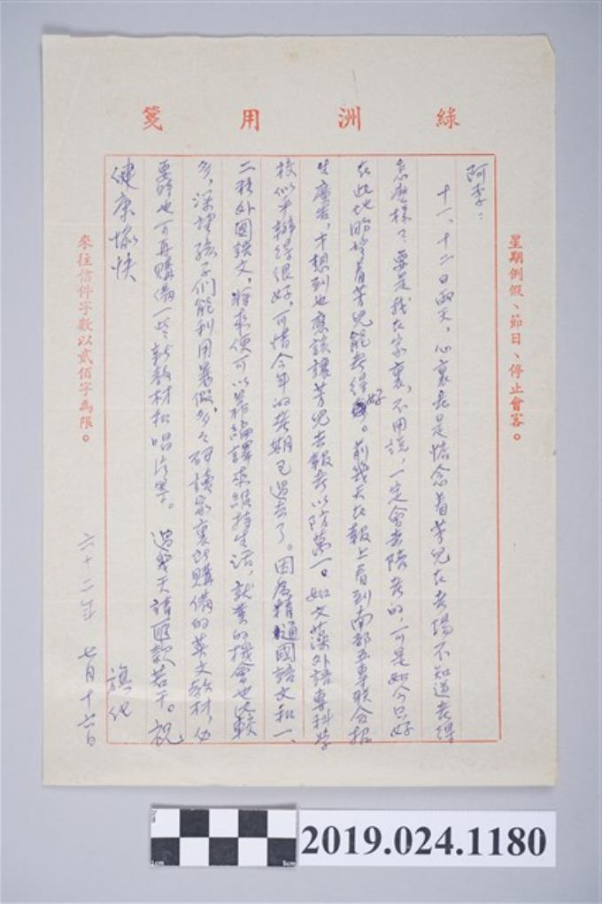 1973年7月11日柯旗化獄中家書