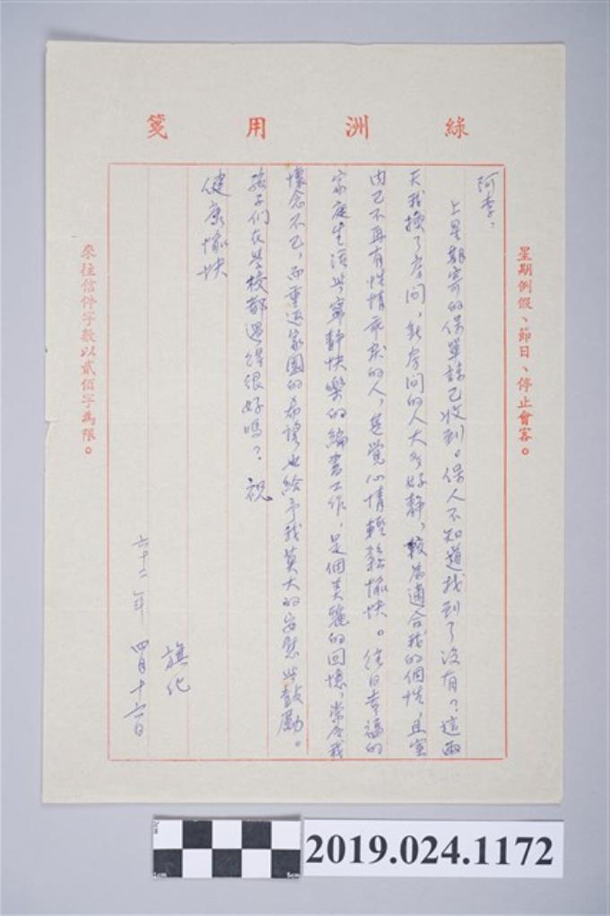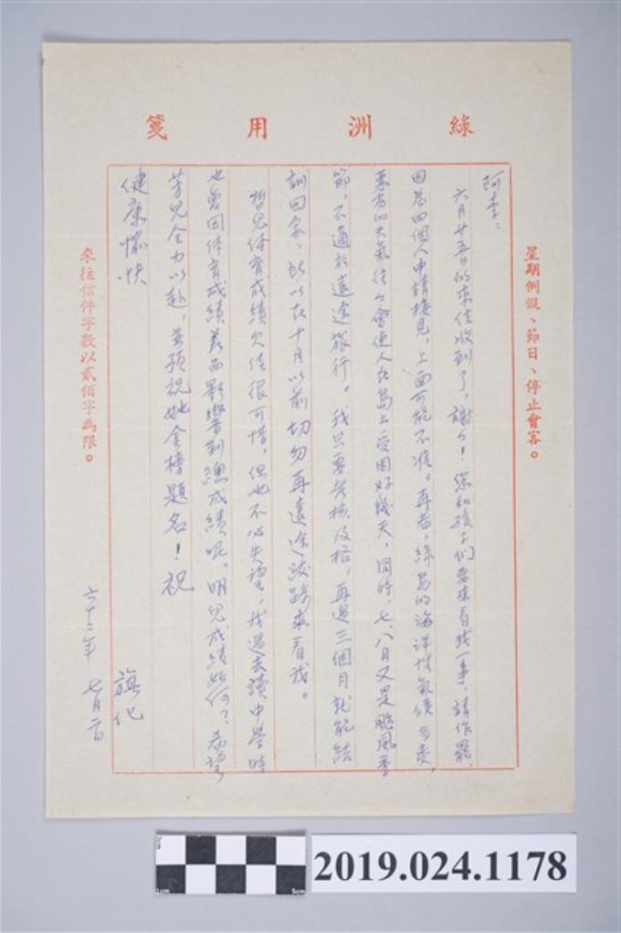 1973年7月2日柯旗化獄中家書