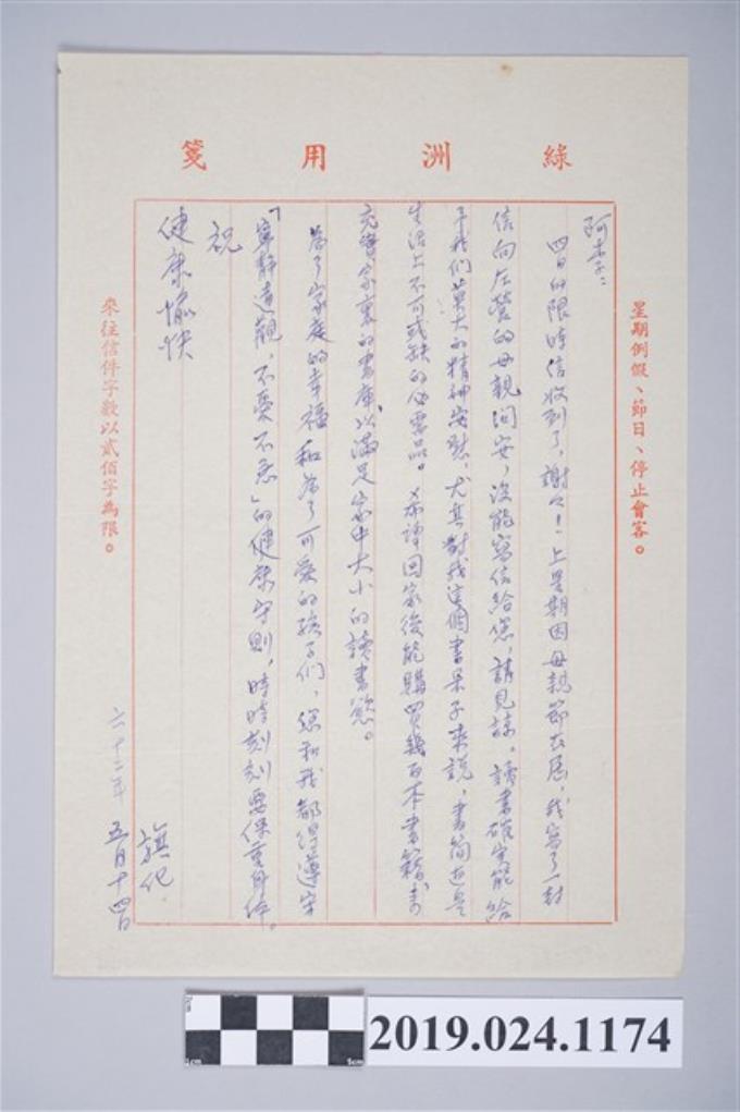 1973年5月14日柯旗化獄中家書