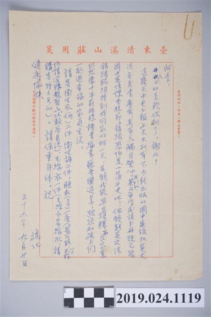 1970年9月22日柯旗化獄中家書