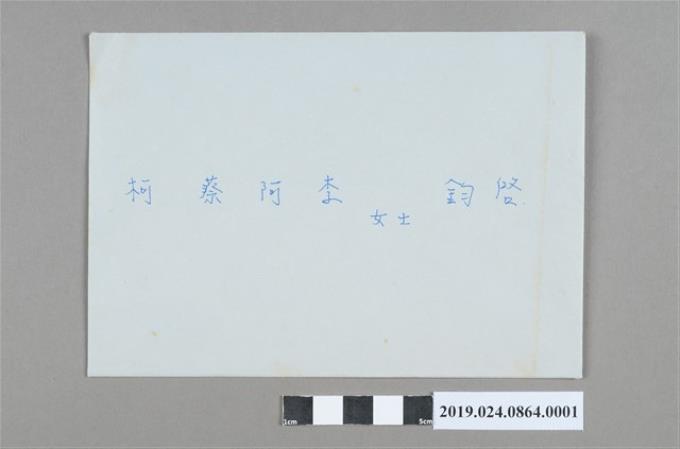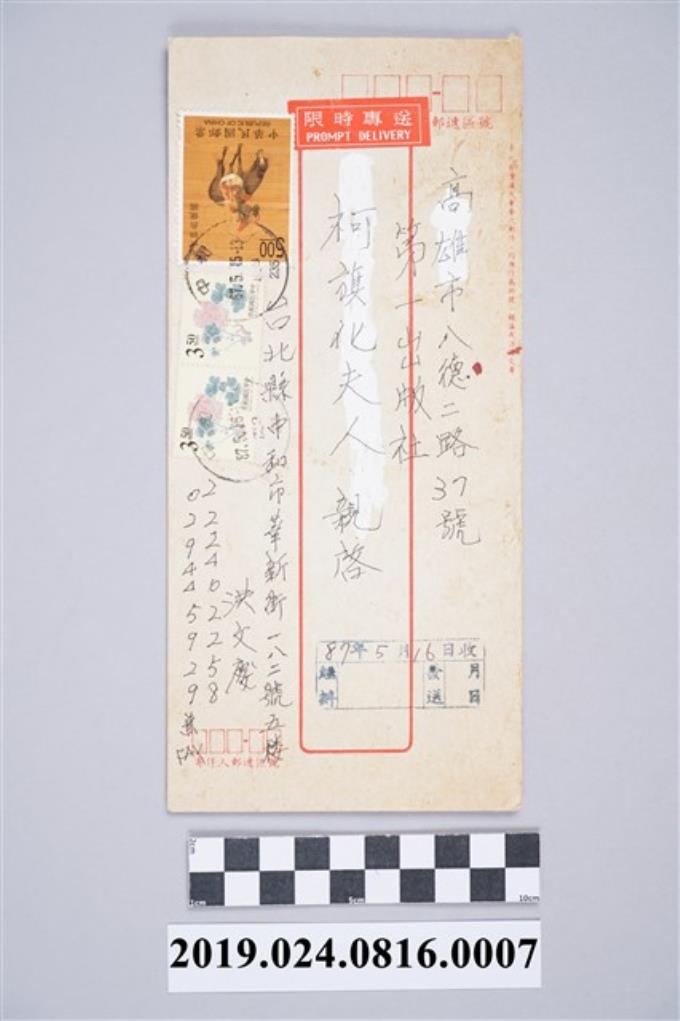 洪王俞萍寄柯蔡阿李感謝信封