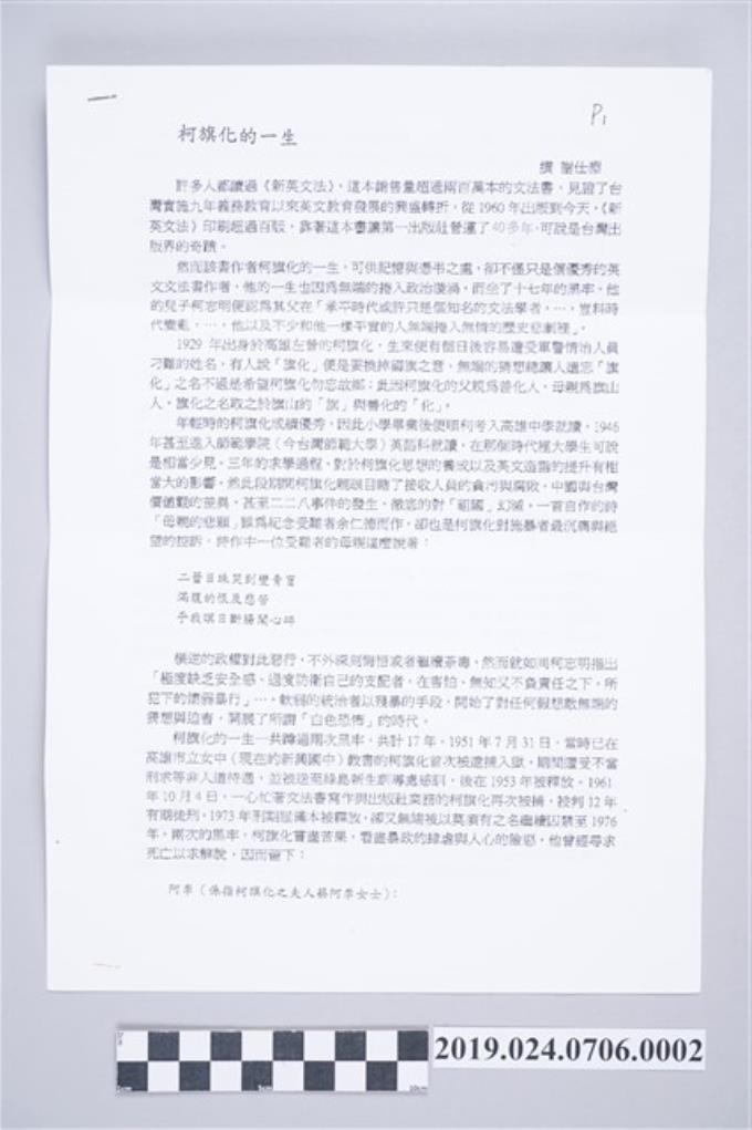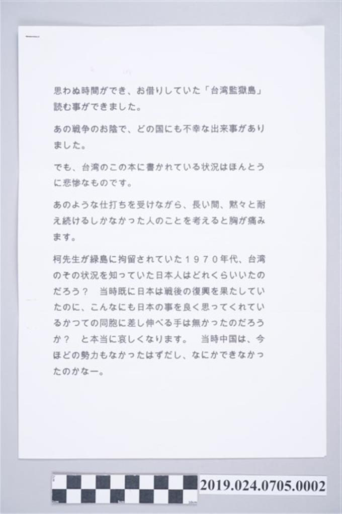 沈炯煌寄柯蔡阿李信件之內容(2008年1月18日)