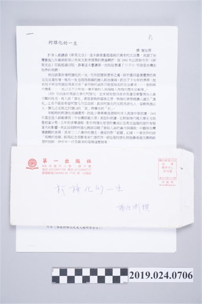 沈炯煌寄柯蔡阿李信件之信封(2008年1月18日)