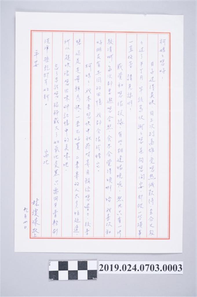 林瓊珠寄柯蔡阿李信件之內容(2006年9月4日)