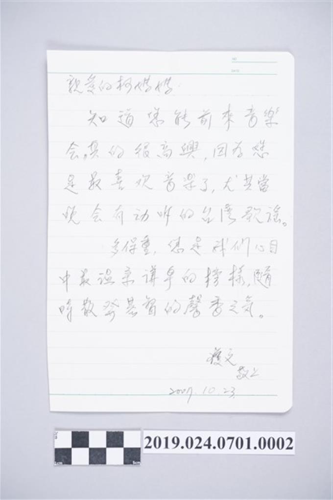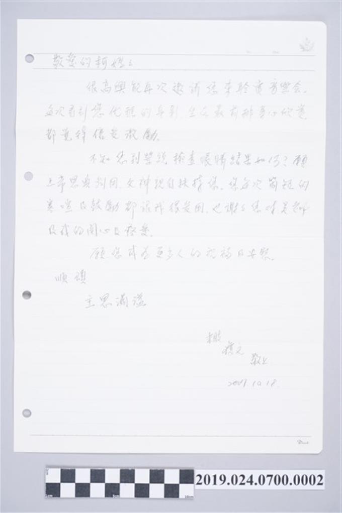 許瓊文寄柯蔡阿李信件之內容(2007年10月22日)