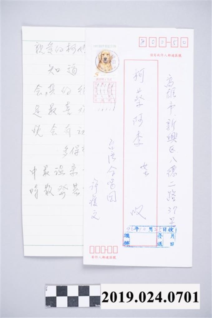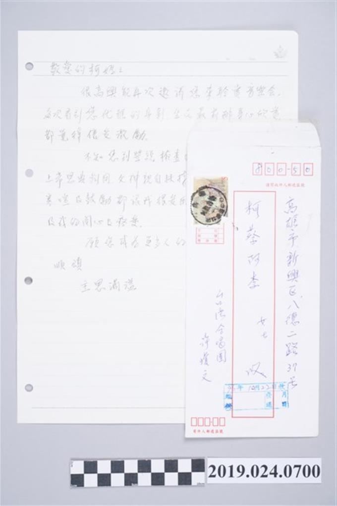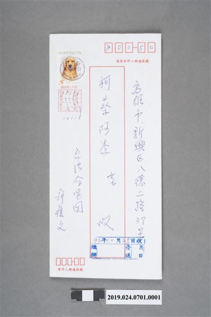 許瓊文寄柯蔡阿李信件之信封(2007年10月22日)