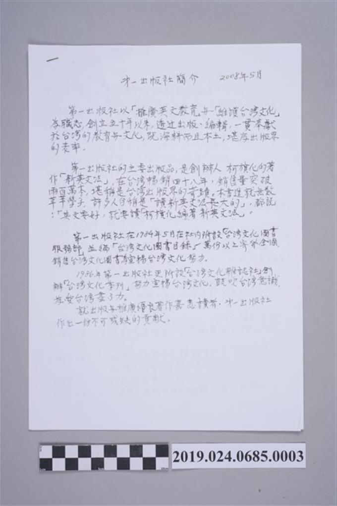 柯蔡阿李撰第一出版社簡介與大事年表之內容影本