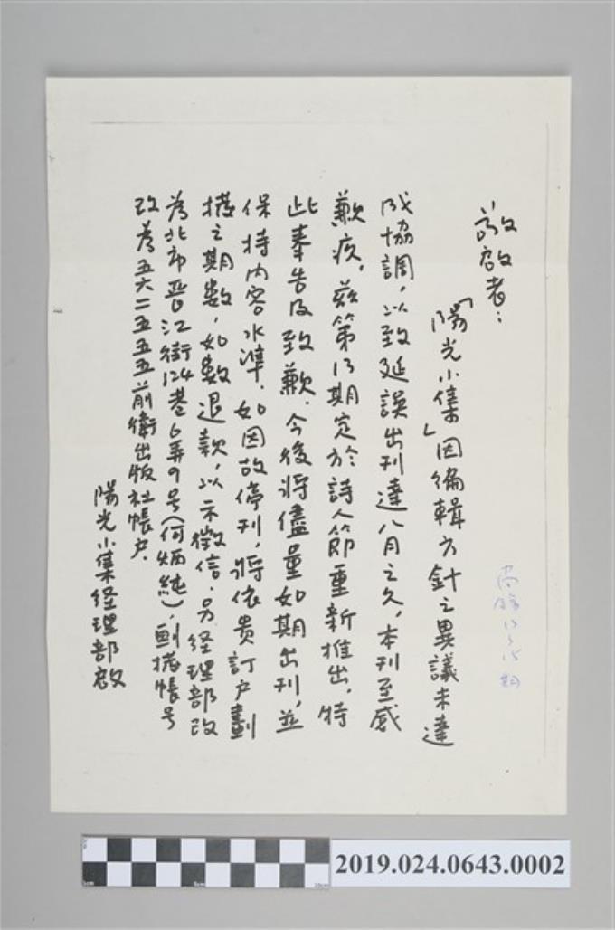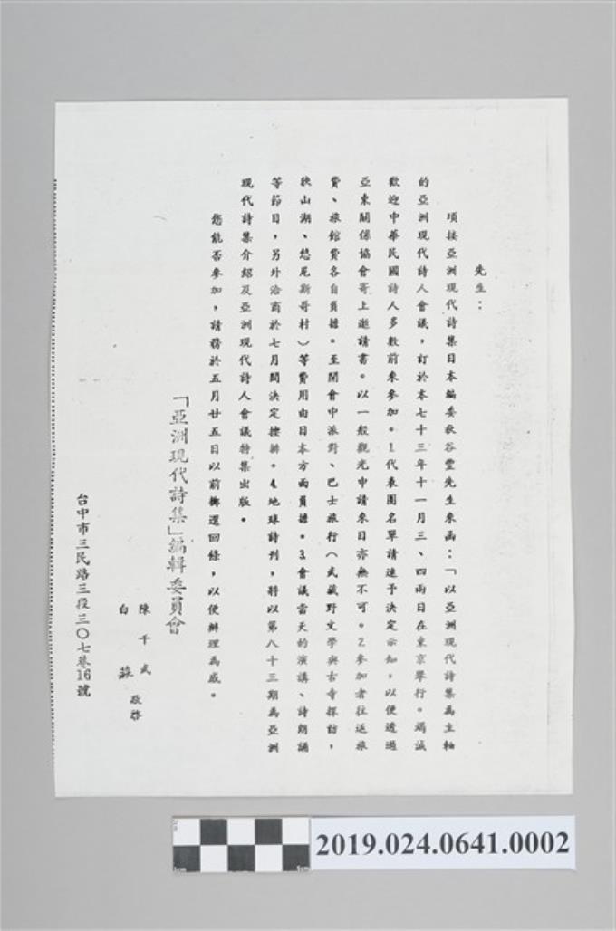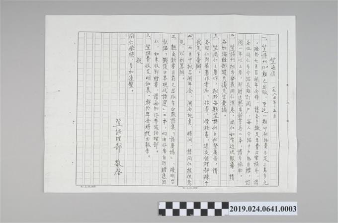 笠詩社寄柯旗化通訊信紙(1984年5月13日)