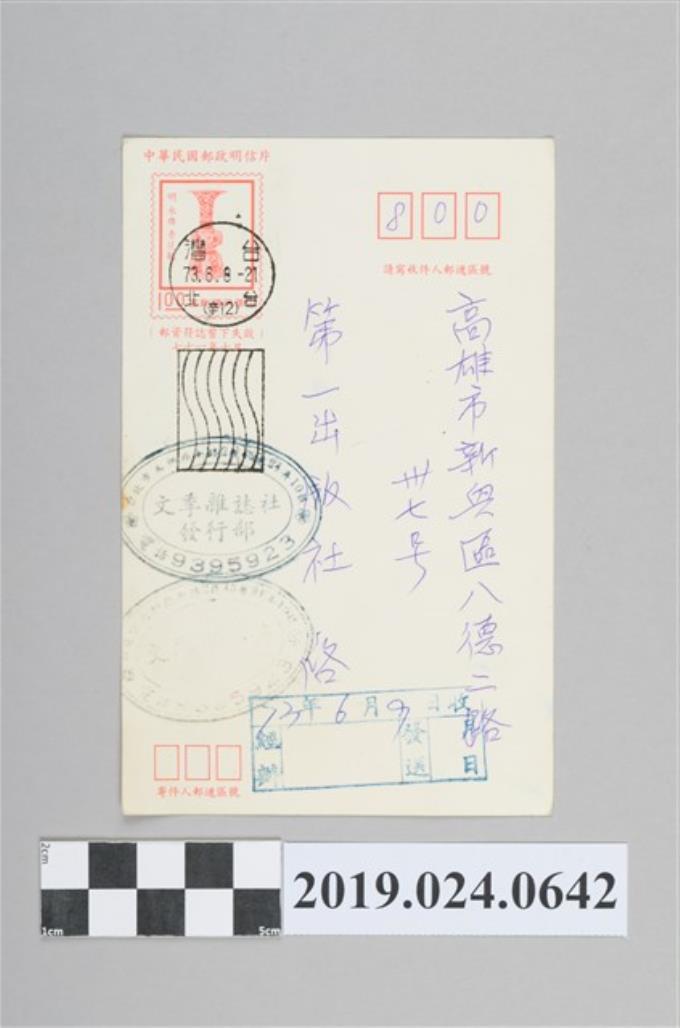 笠詩社寄柯旗化通訊信封(1984年5月13日)