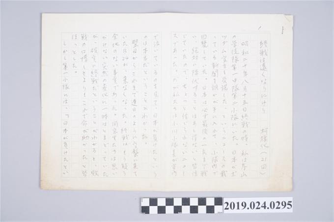 柯旗化投稿日文文章〈終戦は遠くなりにけり〉手稿