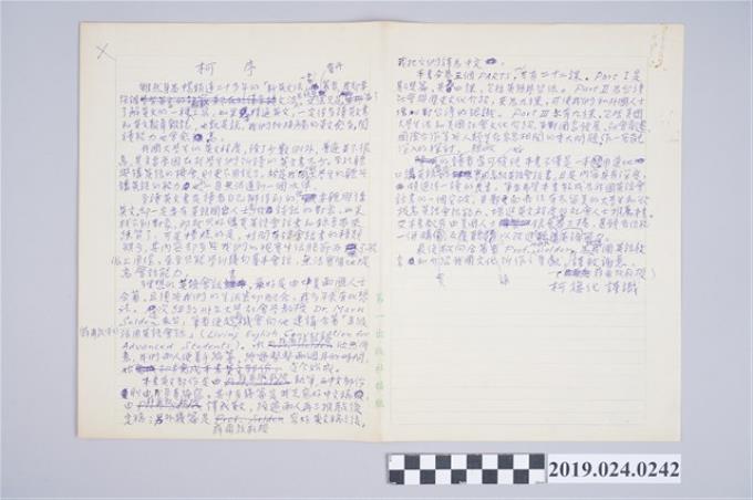 柯旗化與Mark Selden合編《高級活用英語會話》中文序文手稿