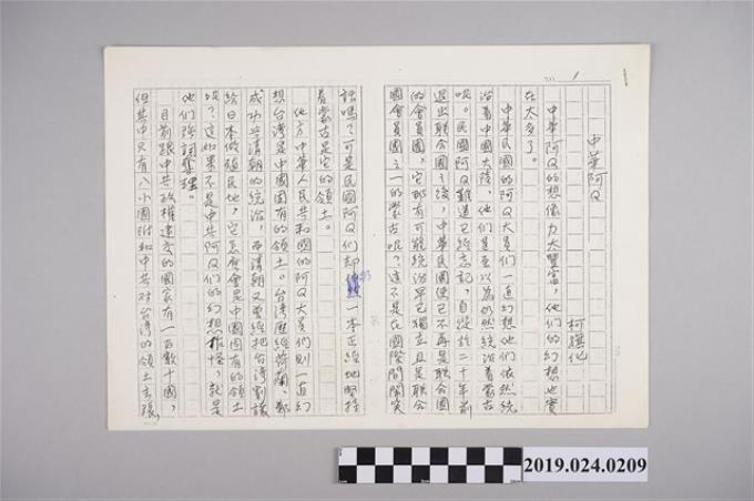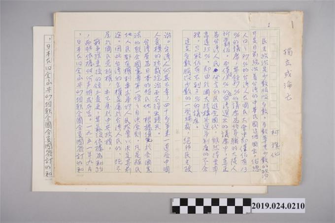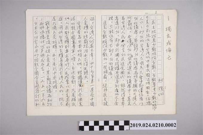 柯旗化文章〈獨立或淪亡〉手稿之影本