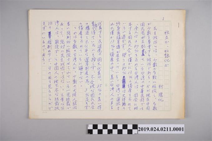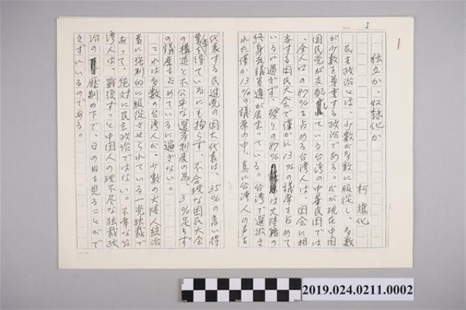 柯旗化日文〈獨立或奴隸化〉手稿影印本