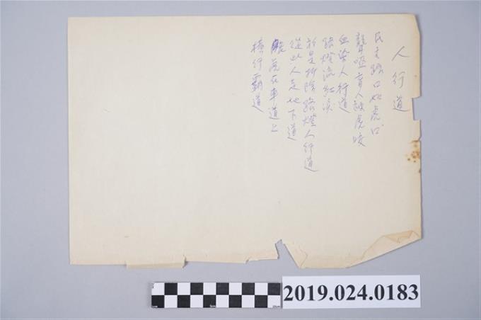 柯旗化詩作〈人行道〉草稿