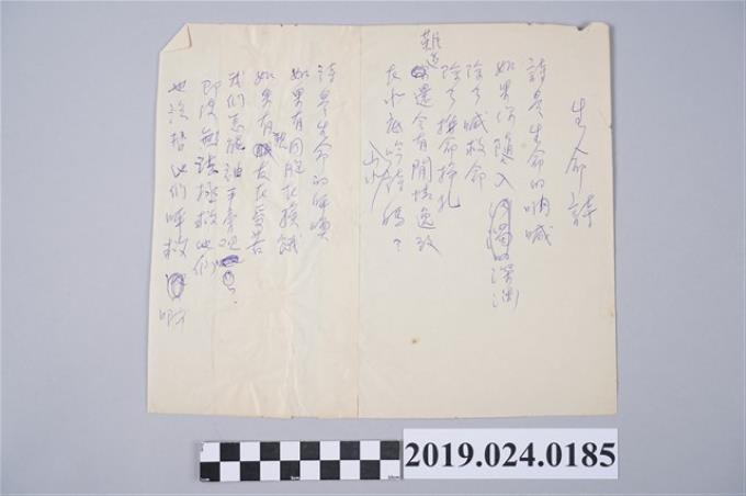 柯旗化詩作〈問蒼天〉草稿