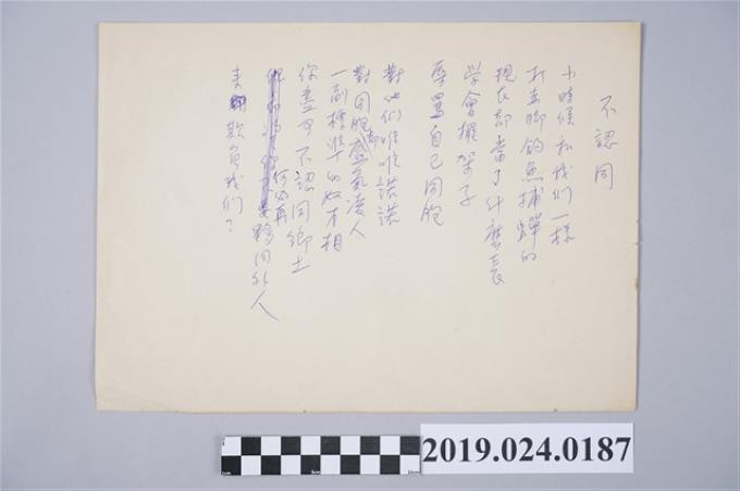 柯旗化詩作〈不認同〉草稿