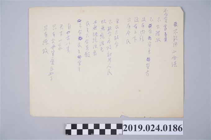 柯旗化詩作〈不能用二分法〉草稿