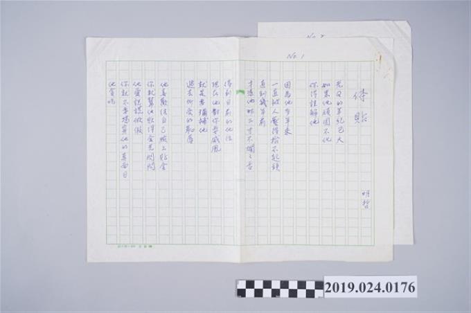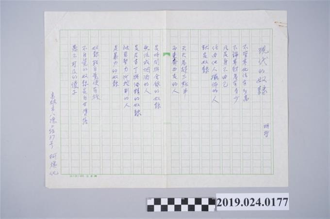 柯旗化詩作〈獄中三部曲之三 -一九七五年綠島狂想曲〉複寫稿