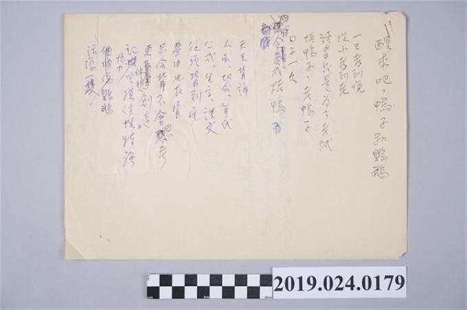 柯旗化詩作〈醒來吧,鴨子和鸚鵡〉草稿