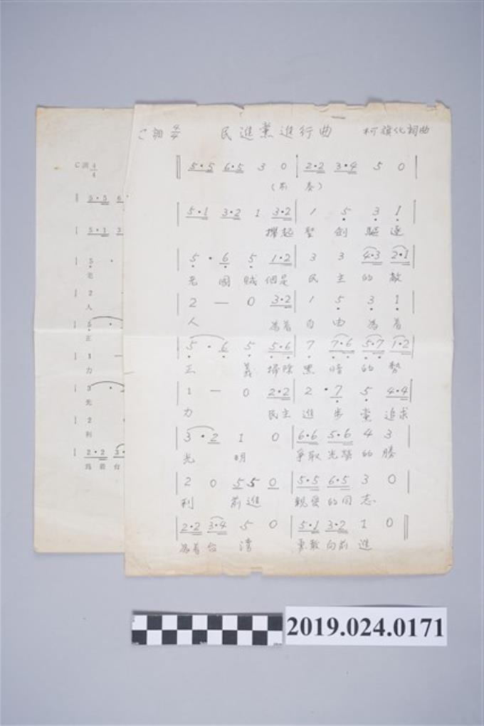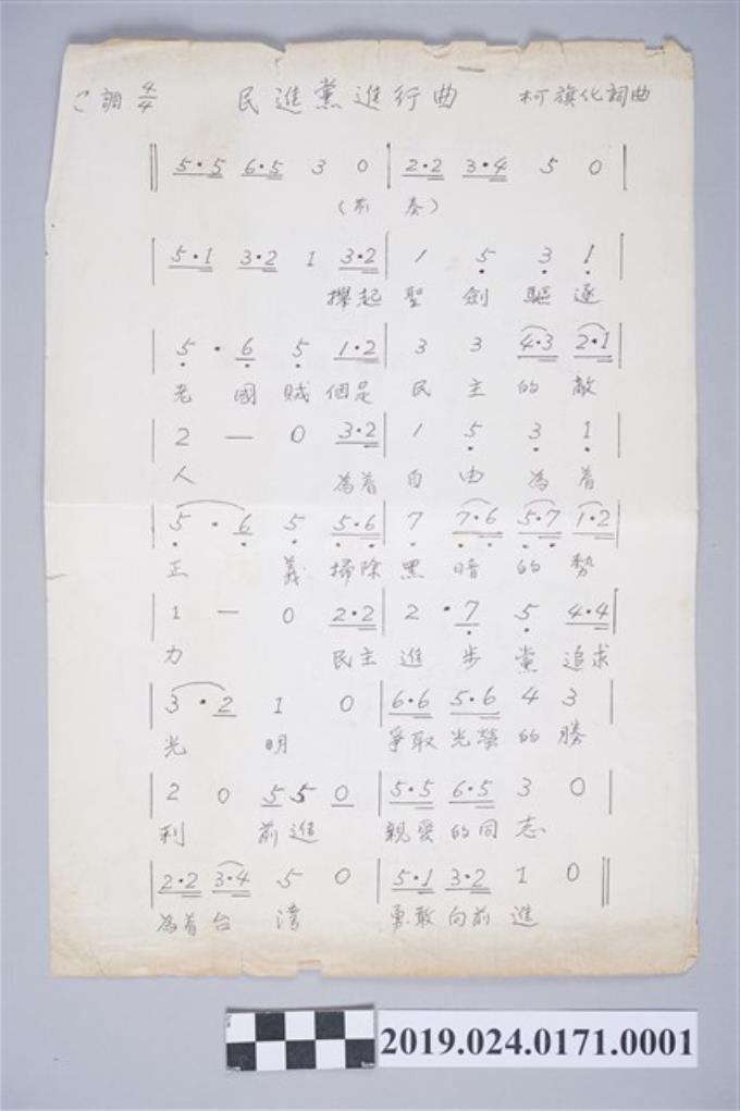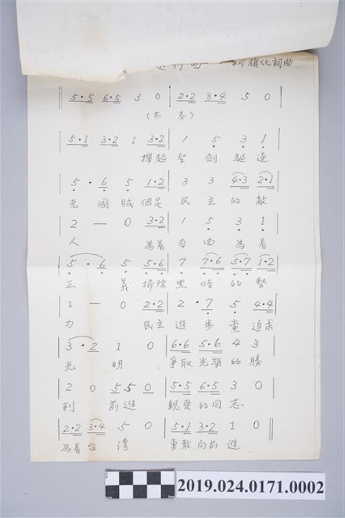 柯旗化〈民進黨進行曲〉詞曲手稿影印本
