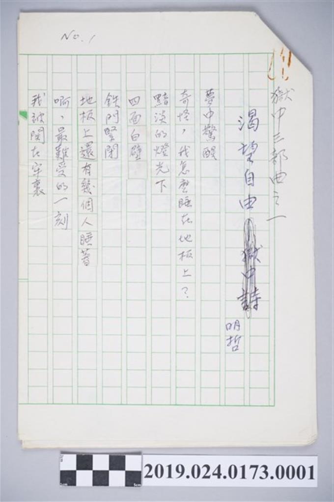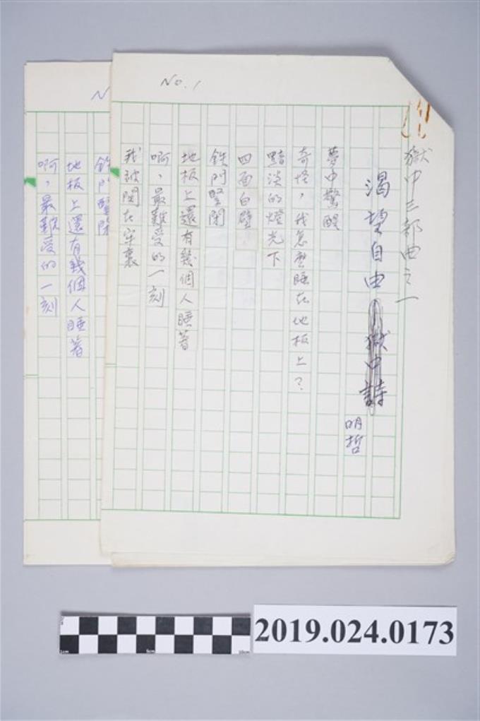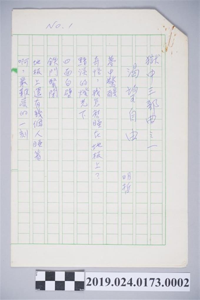 柯旗化詩作〈獄中三部曲之一-渴望自由〉草稿
