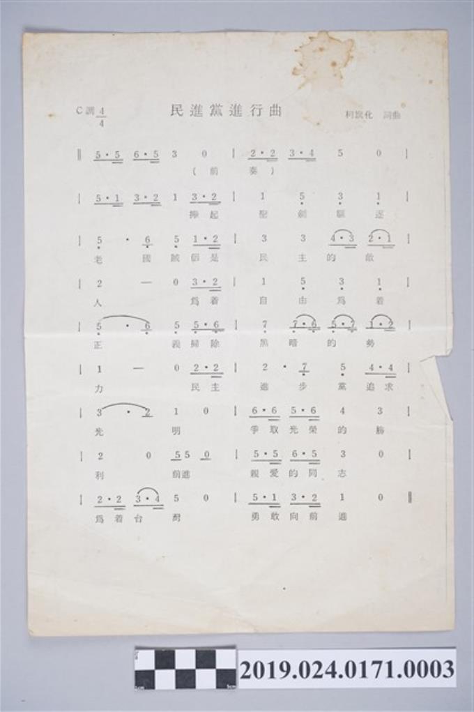 柯旗化〈民進黨進行曲〉詞曲印刷本