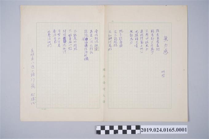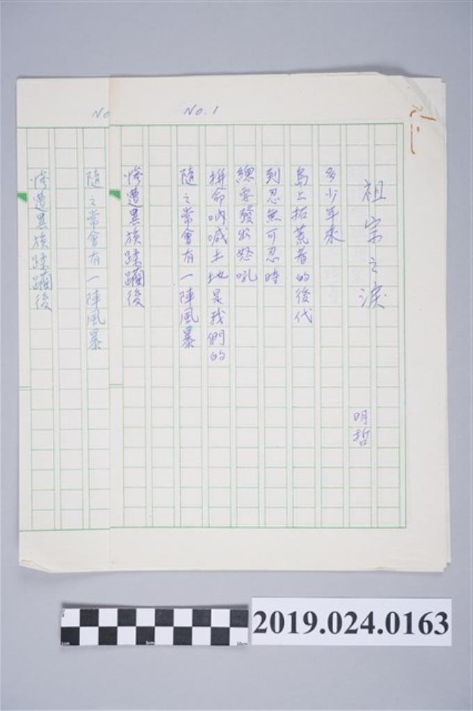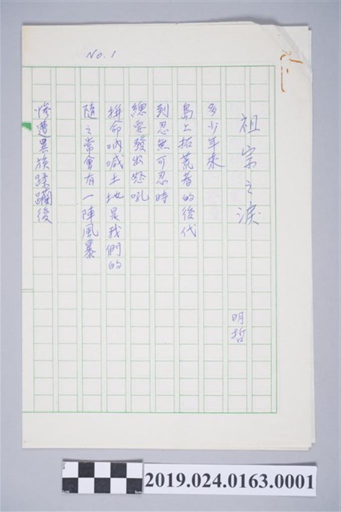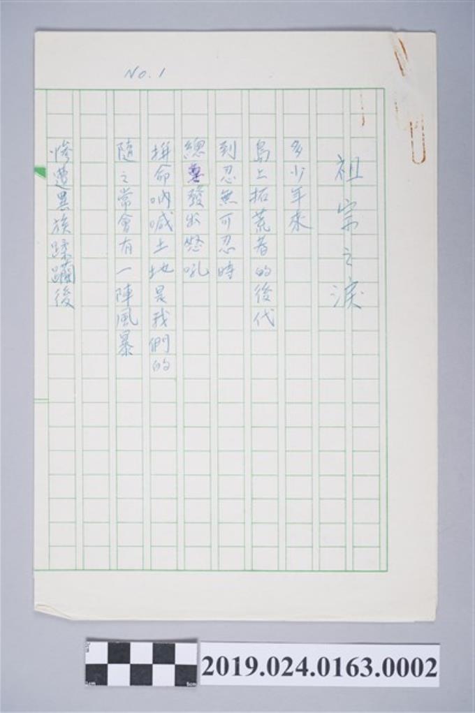 柯旗化詩作〈祖宗之淚〉複寫稿