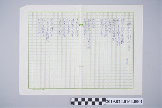 柯旗化詩作〈朋友,請住手〉複寫稿
