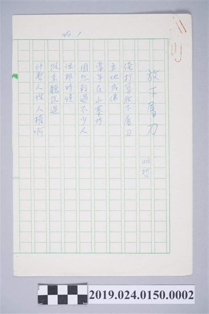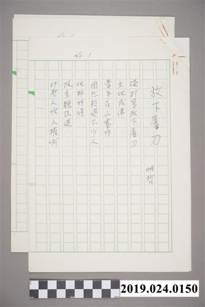 柯旗化詩作〈放下屠刀〉複寫稿